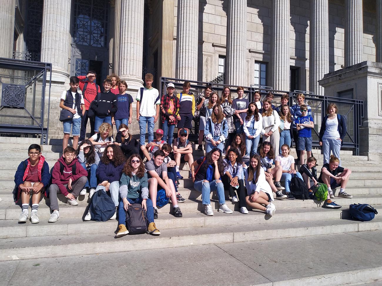 Eine Woche nach der Ankunft der Franzosen durften wir ihre Heimat mit vielen Aktivitäten wie Klettern und Lasergame erleben. Am Montag haben wir die ehemalige religiöse Hauptstadt Lyon besichtigen und am folgenden Tag haben wir einen Vormittag im Unterricht der französischen Partnerschule in Thoissey verbracht. Der Nachmittag war bestückt mit der Besichtigung eines sehr gut erhaltenen Schlosses namens Château de Fléchères. Am Mittwoch, den letzten Tag in Frankreich, waren wir alle zusammen in einer Mehrzweckhalle und haben Spiele auf Französisch und Deutsch gespielt. Am Donnerstag ging es dann wieder zurück zur Gaesdonck und wir haben tolle Geschichten mit nach Hause gebracht.