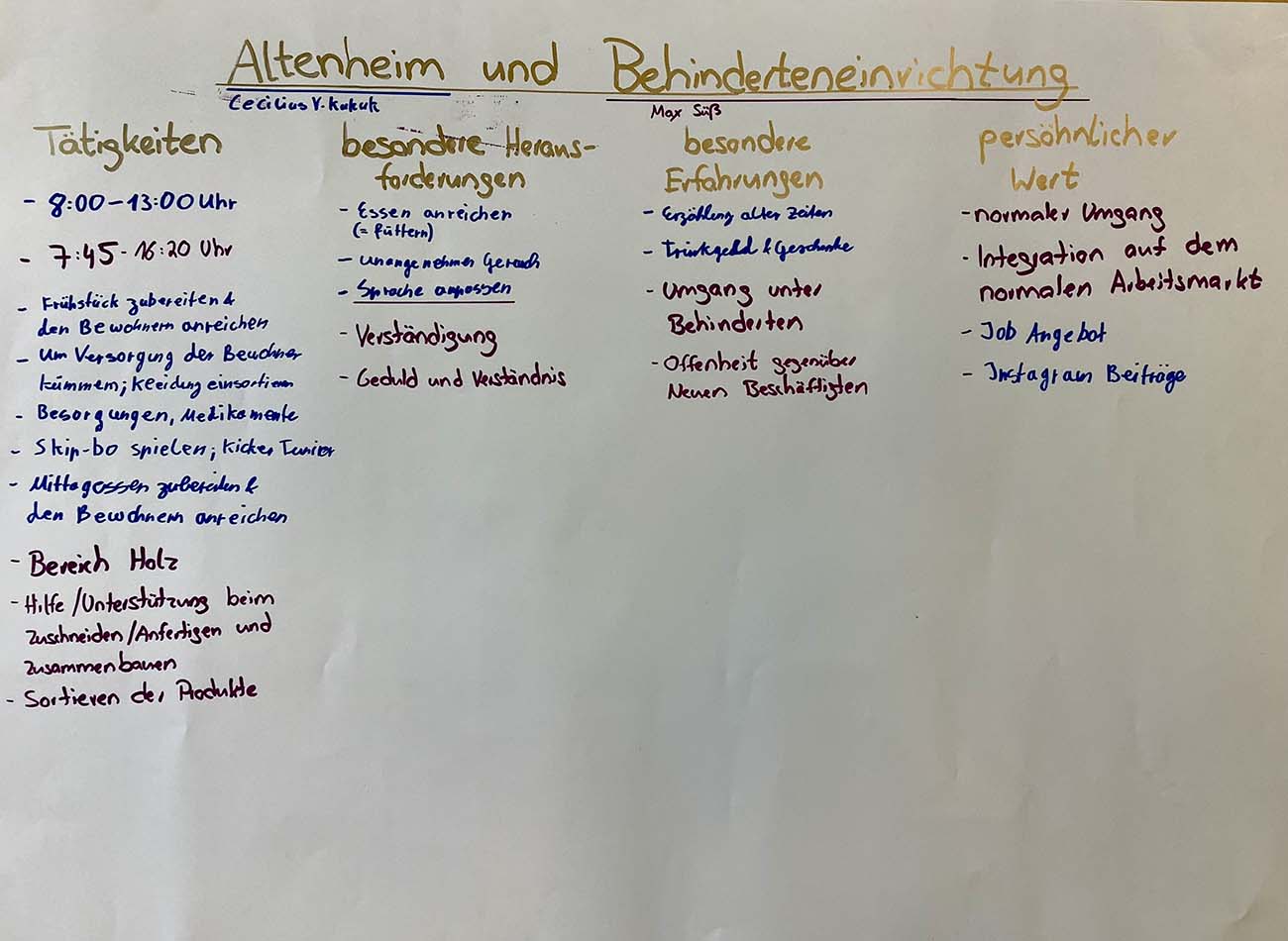 Von Grundschulen und Kindergärten über Krankenhäuser, Tagespflegen und Behindertenwerkstätten hatten die Schüler jede Möglichkeit sich auszuleben und an Herausforderungen zu wachsen, was sicherlich auch gelungen ist.