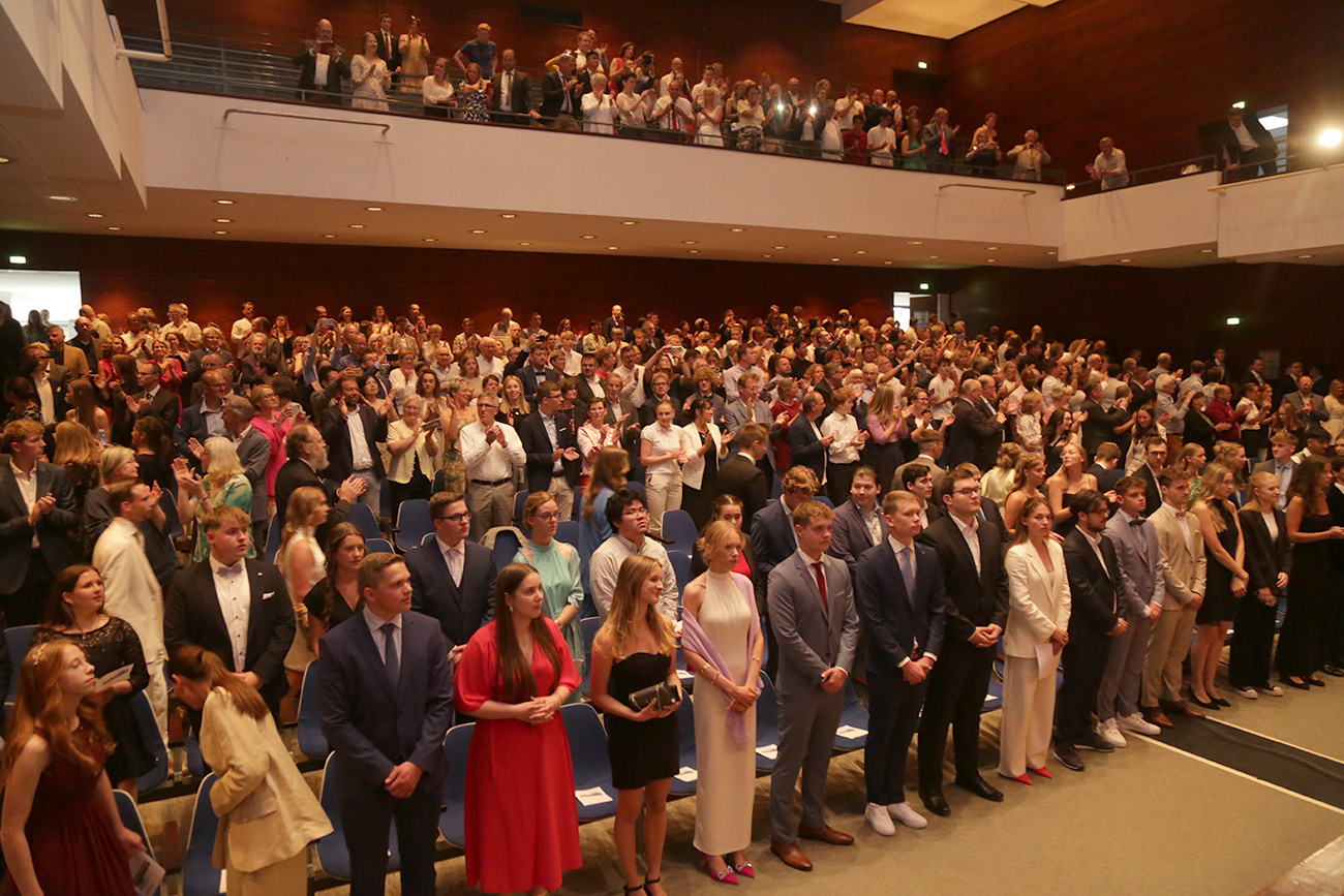 Auch die Elternvertreter, Frau Kurpisz-Strähnz und Frau Dr. van der Velden, die den Schülern ihren Respekt und ihre Anerkennung für ihre harte Arbeit und ihren Durchhaltewillen aussprachen, gratulierten voller Stolz den Abiturienten. Sie erinnerten an die wertvollen Erfahrungen und Freundschaften, die während der Schulzeit geschlossen wurden, und ermutigten die Absolventen, mutig in die Zukunft zu blicken.