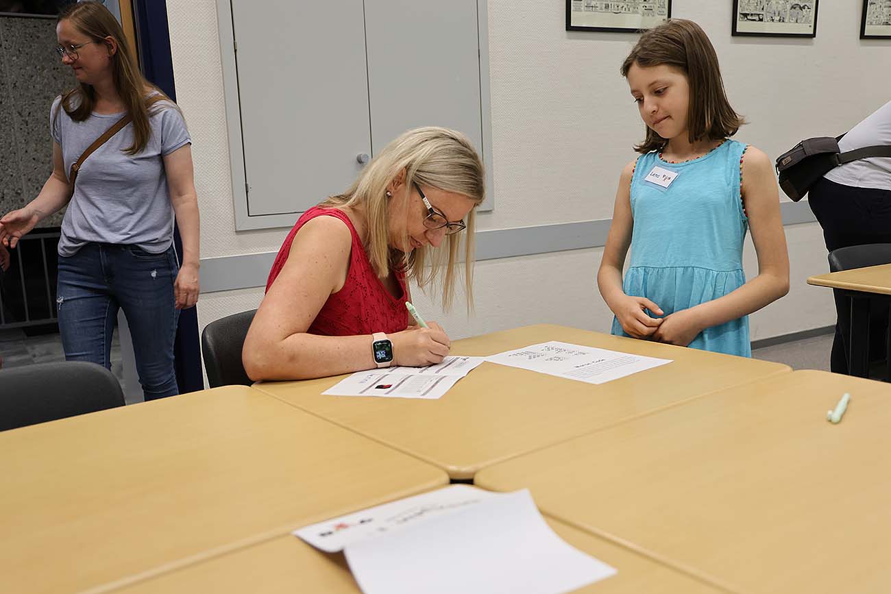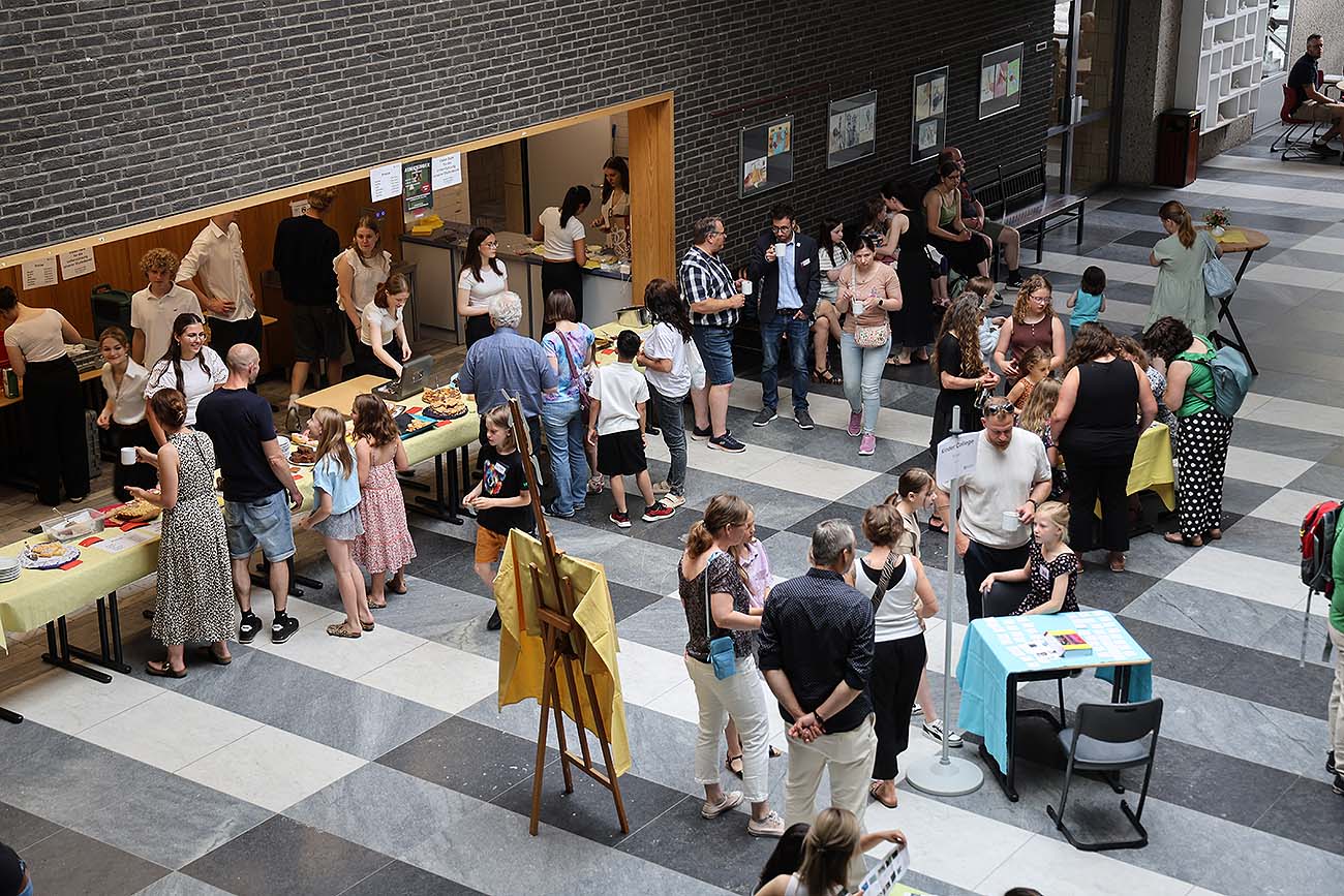 Nach einer kurzen Begrüßung präsentierten die Kinder in einzelnen Klassen- und Fachräumen die Arbeiten, die sie im Laufe des Jahres erarbeitet hatten. Im Anschluss überreichten die Kursleiterinnen und Kursleiter die Teilnahmeurkunden.
