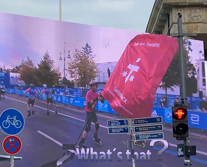 Der Inliner-Marathon in Berlin: Ich bin sicher, dass dieser erste Marathon für die Schülerinnen und Schüler der Q2 für immer mit einer positiven Erinnerung verknüpft ist. Wir haben den Stolz in den Augen unserer Kinder gesehen und zu Recht: Sie haben es geschafft und wissen, was es heißt, ein Ziel mit Disziplin und Training zu erreichen und an den eigenen Erfolg zu glauben.