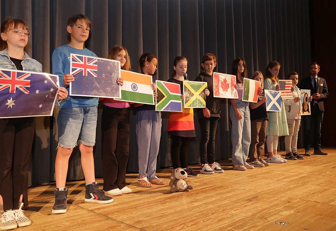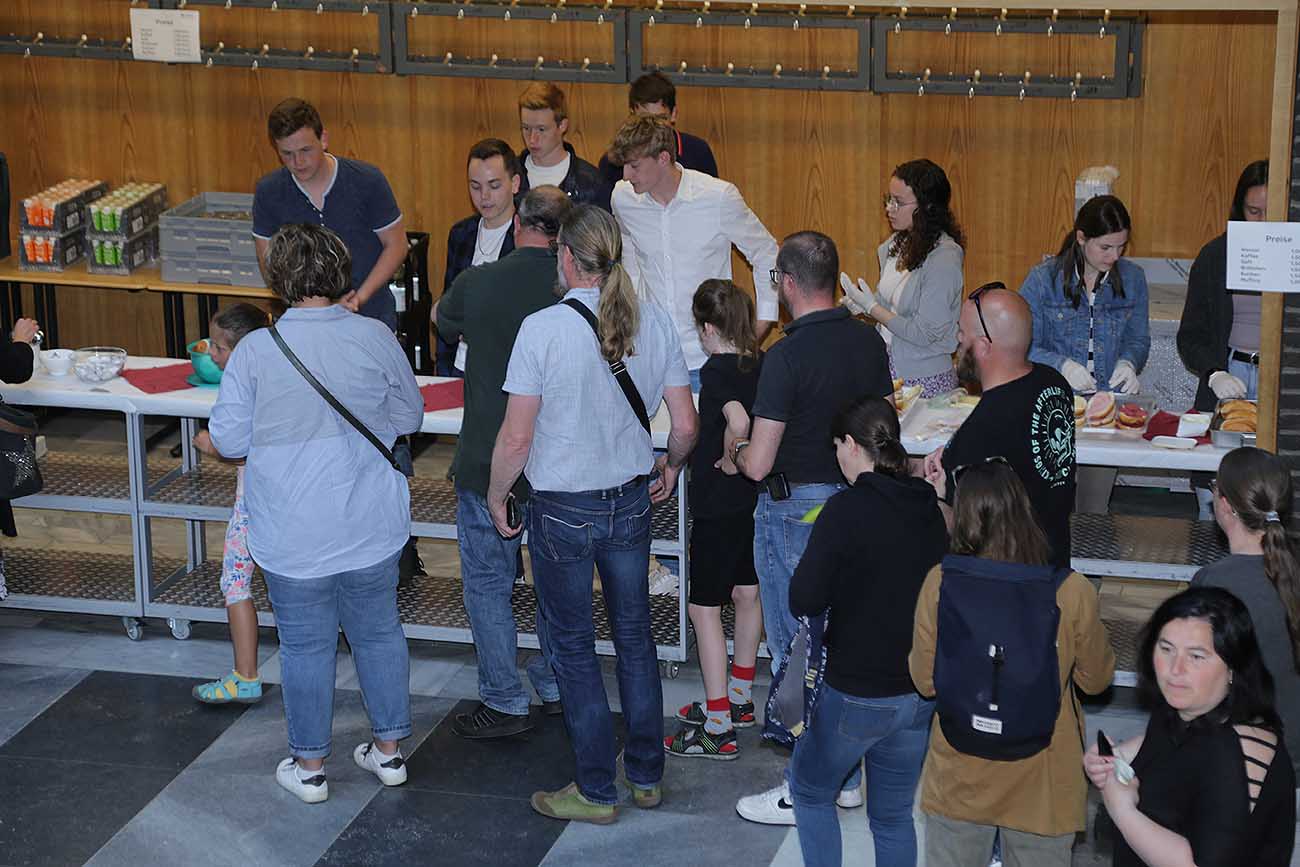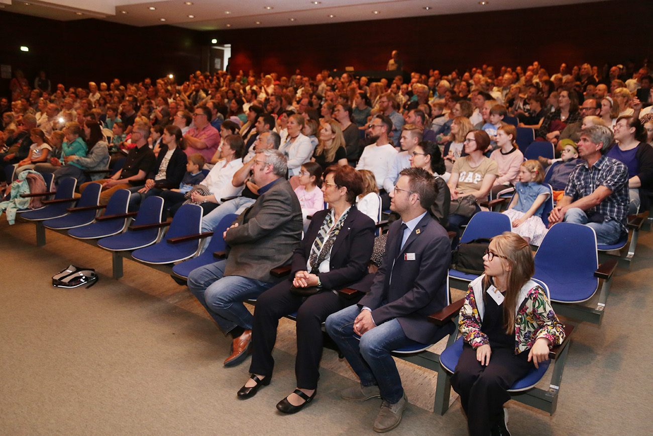 Wie groß das Interesse an den Ergebnissen der Kinder war, zeigte die vollgefüllte Aula der Gaesdonck. Hier begrüßte der Koordinator des Kinder College, Markus van Briel, die Kinder, Eltern und alle Anwesenden. „Ihr habt in diesem Jahr viel erreicht, euch in den verschiedenen Kursen persönlich weiterentwickelt und vielleicht ein neues Talent entdeckt. Jede und jeder von euch hat das Beste gegeben und gezeigt, dass mit Engagement viel möglich ist“, resümierte van Briel rückblickend. Auch der Gaesdoncker Direktor, Dr. Markus Oberdörster, zeigte sich über so viele Gäste auf dem Campus begeistert und erinnerte in seinem Grußwort an das Leitmotiv der Gaesdonck „Kopf-Herz-Charakter“, was bestens zur Förderidee des Kinder College passt. Sowohl van Briel als auch Oberdörster forderten die Kinder auf: „Bleibt zukünftig weiterhin neugierig!“ Die besondere Verbundenheit der Gaesdonck und des Kinder College mit der Politik zeigte sich darin, dass die stellvertretende Bürgermeisterin der Stadt Goch, Maria Beaupoil, es sich nicht nehmen ließ, die Stadt Goch bei der Abschlussveranstaltung zu vertreten, indem sie ebenfalls ein Grußwort sprach und sich sehr für die Ergebnisse der einzelnen Kurse interessierte. Nach der Präsentation erhielten alle Teilnehmer ihr ersehntes Zertifikat. Beendet wurde der Vormittag mit einem gemeinsamen Mittagessen.