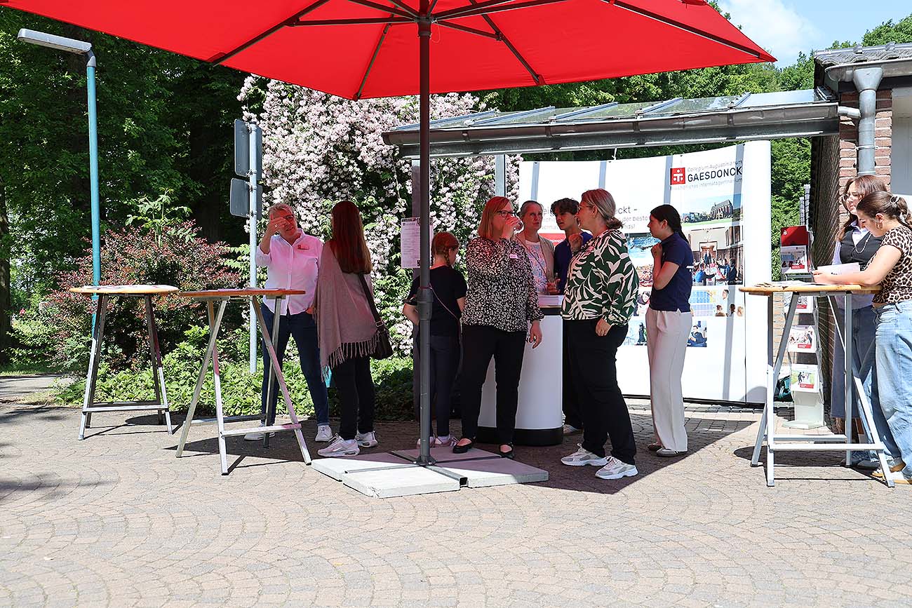Am Abend stand das Wiedersehen im Mittelpunkt: Der Alumni-Abend ab 17.00 Uhr brachte ehemalige Gaesdonckerinnen und Gaesdoncker verschiedener Jahrgänge zusammen. Bei einem Grillbuffet von 18.00 bis 19.00 Uhr und einem gemütlichen Beisammensein vor und in der Taverne bis 22.30 Uhr klang der Festtag in geselliger Atmosphäre aus.