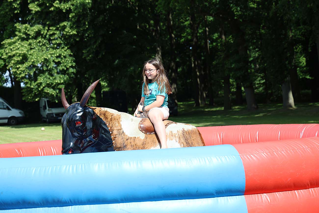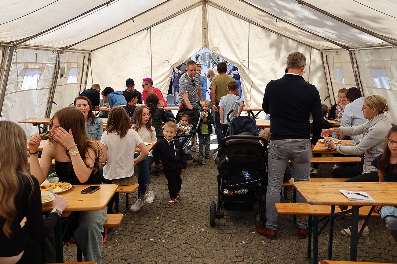 Im Mittelpunkt des Tages stand das aktive Erleben des weitläufigen Campus: Der große Fun-Park auf dem Sportplatz begeisterte mit Air-Bungee, Bike-Looping, Bull-Riding, einem VR-Simulator, Hüpfburg und Spielstraße. In der kleinen Turnhalle konnten sich Besucher sportlich beim Tischtennis oder an der Kletterwand ausprobieren. Kreative Köpfe waren in der Kunstschule willkommen, wo zwischen 13.00 und 15.00 Uhr offene Ateliers zum Mitmachen einluden. Auch die Pfadfinder der Schule präsentierten sich mit einer Jurte und informierten über ihre Projekte und Fahrten. Für alle Quizfreunde gab es zudem die Möglichkeit, am Gaesdonck-Quiz teilzunehmen – mit Abgabe bis 15.00 Uhr am Infostand. Um 15.30 Uhr folgte die Siegerehrung auf dem Sportplatz.