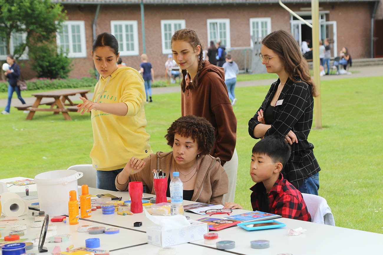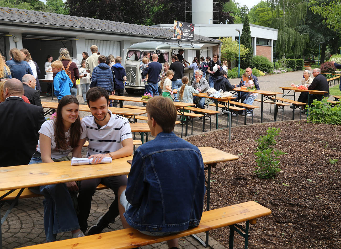 In diesen Frühlingstagen ist der Gaesdoncker Campus immer wieder besonders einladend. Die richtige Atmosphäre, um die neuen Gaesdoncker der künftigen Sexta in Schule und Internat zu begrüßen. In der Aula stellte Dr. Markus Oberdörster den Kindern die wichtigsten Ansprechpartner aus Schule und Internat vor. Im Anschluss gab es endlich wieder ein paar Stücke der Gaesdoncker Big Band, die 2 Jahre keinen öffentlichen Auftritt in der Aula mehr hatte und deren Mitglieder die Spielfreude deutlich anzumerken war. Im hinteren Bereich des Campus konnten sich die Kinder auf dem Sportplatz (auf den Spielgeräten) vergnügen oder aus dem reichhaltigen kulinarischen Angebot bedienen. Unseren Internatsschülerinnen und -schülern konnte man ansehen, wie sie am Internat interessierten Familien voller Stolz ihre Gaesdonck zeigten. Im Anschluss an den Familientag und die Beratung der Internatsinteressenten fanden sich dann Ehemalige aus den unterschiedlichsten Abiturjahrgängen ein, um sich auszutauschen. Viele waren der Einladung unserer Ehemaligenbeauftragten Stefanie Horster gefolgt und fanden den Weg zur Gaesdonck. Auch der Dialog mit unseren derzeitigen Oberstufenschülerinnen und Schülern stand bei diesem Treffen im Fokus. Der Abend war sicherlich hinsichtlich des Aufbaus eines Gaesdoncker Ehemaligennetzwerkes erfolgreich.