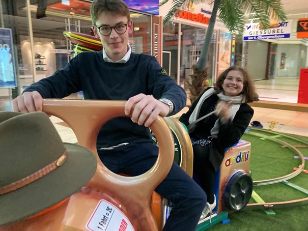 Es war sonst noch keiner auf dem Gelände unterwegs, als wir uns am vergangenen Freitag um 6.45 Uhr an der Gaesdonck trafen, um übers Wochenende die Reise nach Weimar anzutreten. 30 Schülerinnen und Schüler der Leistungskurse Deutsch und Geschichte sowie drei Lehrer freuten sich auf die Fahrt. Die Busfahrt nutzten die meisten, um etwas Schlaf von der klausurreichen Woche nachzuholen. Als wir kurz nach 13 Uhr in Weimar ankamen, konnten (fast) alle ihr Hotelzimmer beziehen – schade, Herr Philipps. Dann ging es auch schon zur Stadtführung durch Weimar. In zwei Gruppen erfuhren wir einiges über die Stadtgeschichte Weimars und über bedeutende Gebäude und Orte wie das Stadtschloss oder den schönen Park an der Ilm. Natürlich fielen dabei die Namen Goethe und Schiller mehr als einmal. Aber auch Bach, Wieland, Herder, Martin Luther und Nietzsche standen mit der Stadt in Verbindung. Das obligatorische Foto vor dem bekannten Goethe-Schiller-Denkmal konnten wir leider nicht machen, denn dieses wurde leider gerade saniert. Die anschließende Freizeit nutzten einige, um eine der nicht weniger bekannten Thüringer Rostbratwürste zu bestellen oder um eigenständig die Stadt zu erkunden. Nach einem gemeinsamen Abendessen im Hotel, kehrten einige nochmal in die Stadt zurück. Nützlich hierbei war, dass sich das Hotel nur wenige Minuten zu Fuß vom Stadtzentrum befand.