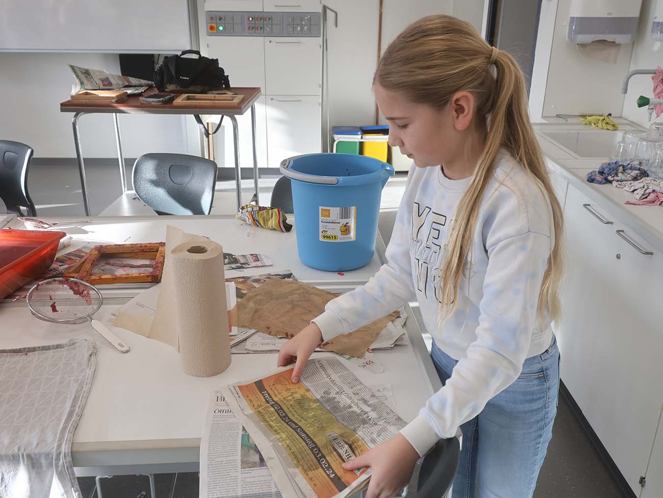 Die Kollegen, die sich die Angebote für die Projekttage überlegt hatten, lagen richtig, wie die Begeisterung unserer Schülerinnen und Schüler zeigt. Mit Elan wurde gebacken, geprobt, gesungen, Sport getrieben, Papier geschöpft und in der Musicalwerkstatt gewerkelt. Heute auf dem Campus sah man meist strahlende Augen – das galt auch für die Sportangebote und die Lateinrally, die auf dem Gelände stattfand. Morgen geht es weiter, und am Mittwoch werden die Ergebnisse in der Aula präsentiert. Schon am ersten Tag gab es sehr tolle Ergebnisse zu bestaunen.