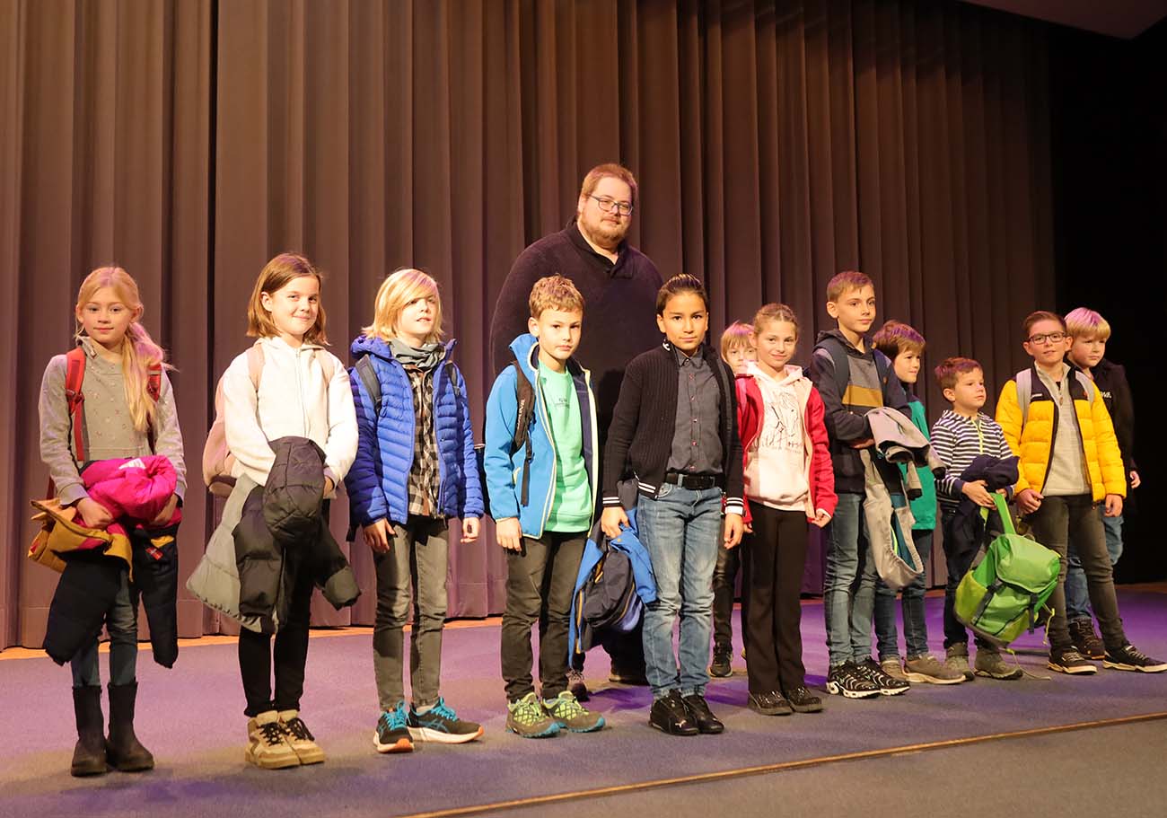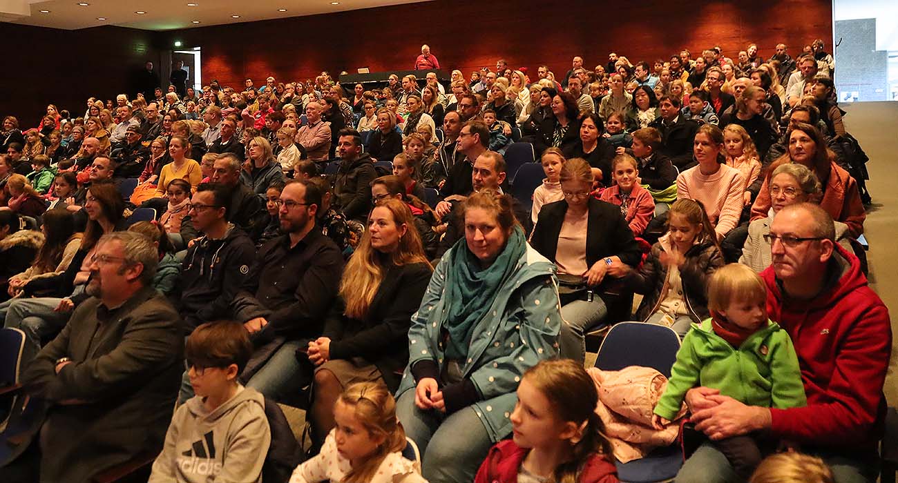 Am Samstag, 04.11.2023, durfte der Koordinator für das Kinder College, Markus van Briel, 118 aufgeregte und zugleich neugierige Grundschulkinder mit ihren Eltern und Familien herzlich in der fast voll besetzten Aula zum ersten Studientag begrüßen. Auch der Direktor der Gaesdonck, Markus Oberdörster, ließ es sich nicht nehmen, die Anwesenden persönlich willkommen zu heißen. Beide Gaesdoncker Verantwortliche waren sehr erfreut darüber, dass das Interesse am Kinder College ungebrochen hoch ist. Denn die Zahl der Bewerbungen (über 235 Kinder) zeigte erneut die große Nachfrage nach dem Förderprogramm für besonders motivierte und begabte Grundschulkinder, welches das Collegium Augustinianum Gaesdonck in Kooperation mit dem Kreis Kleve durchführt.