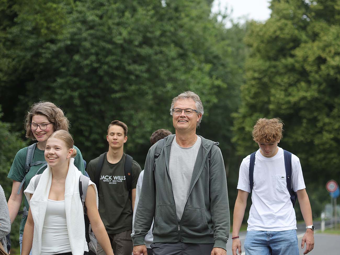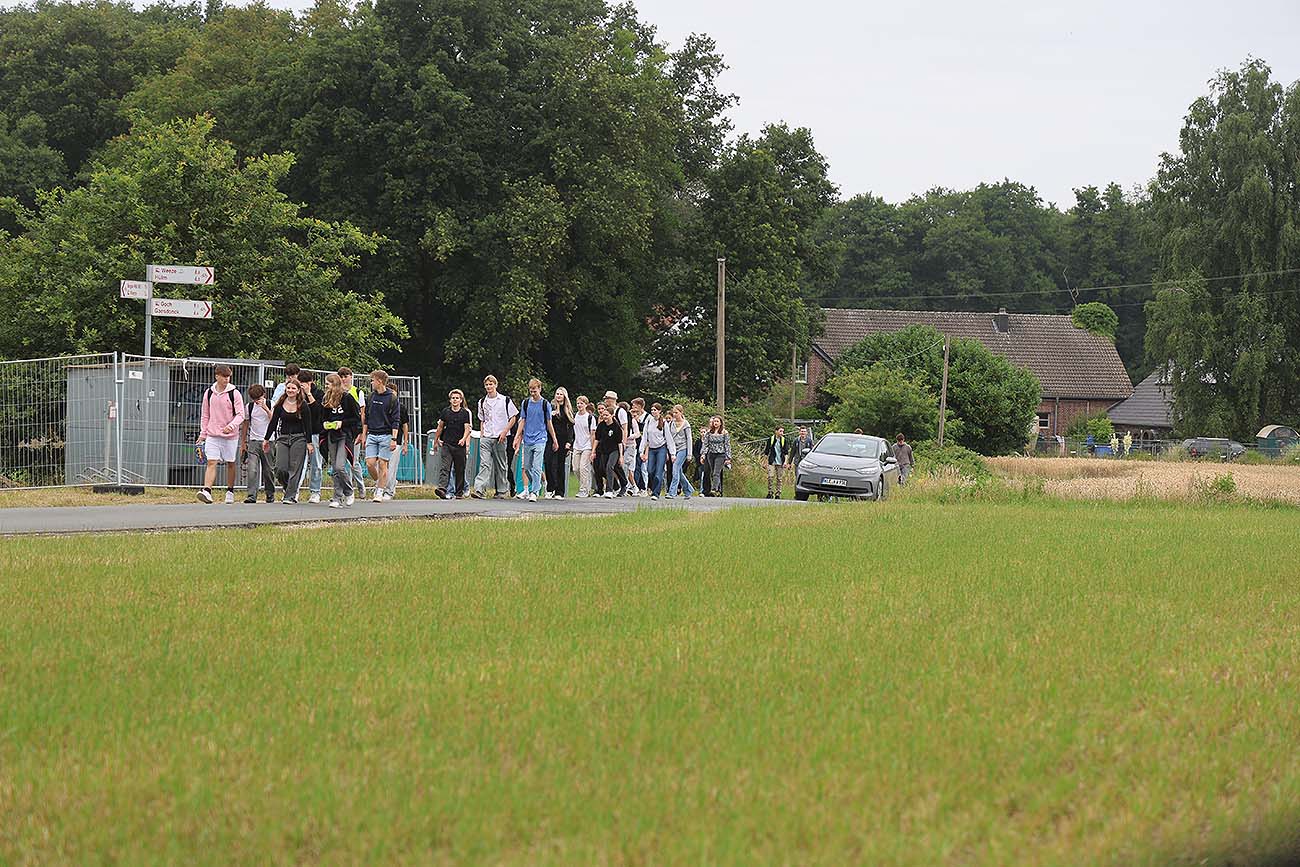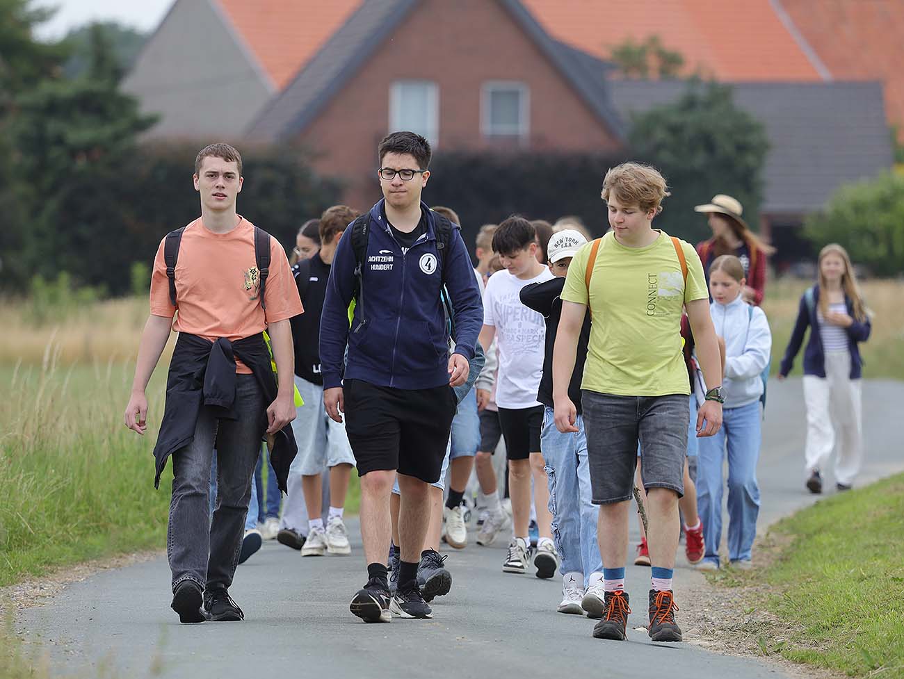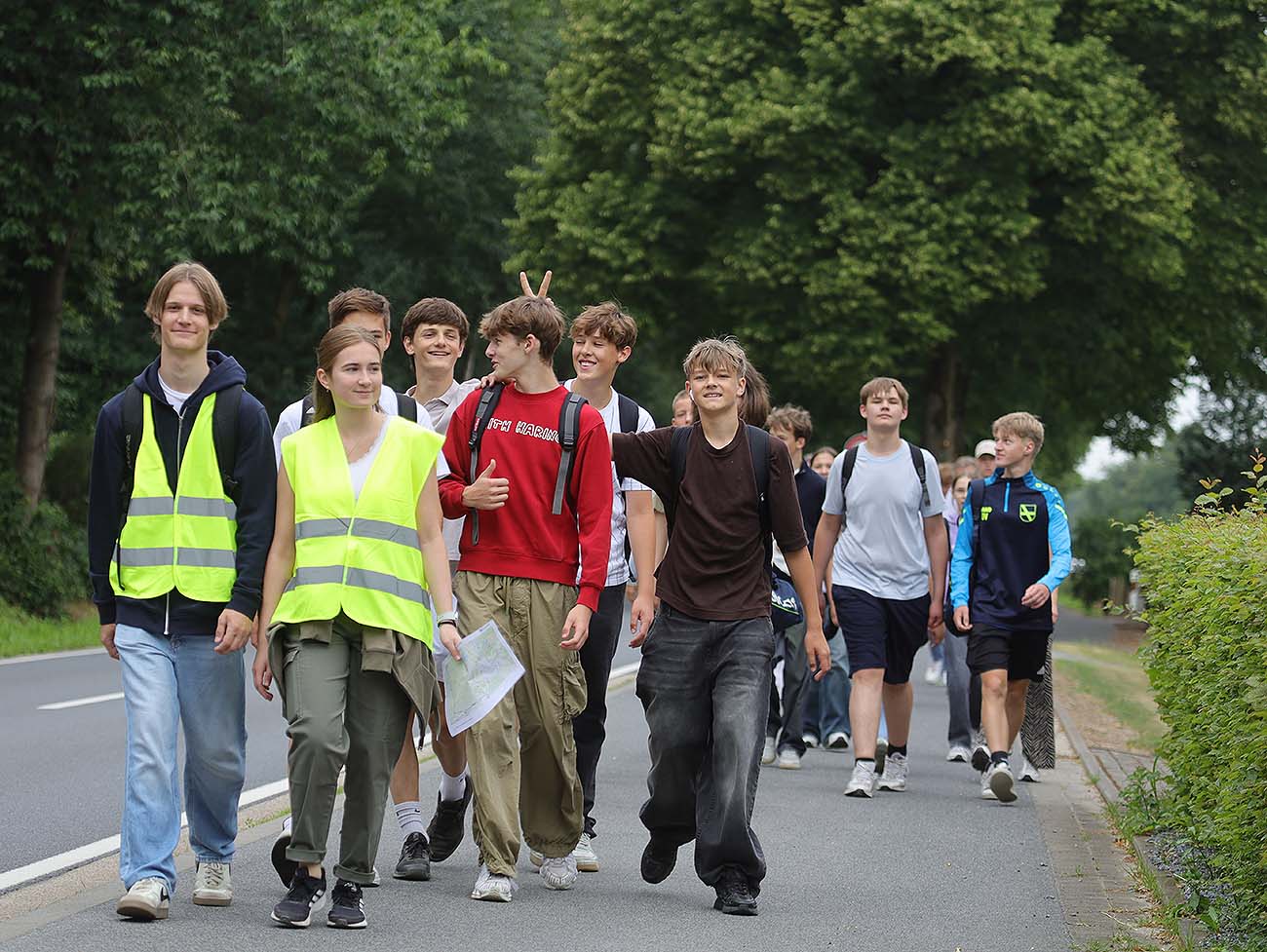 Einmal im Jahr machen sich die Schülerinnen und Schüler der Gaesdonck auf den Weg nach Kevelaer – zu Fuß. Die traditionelle Wallfahrt, bei der rund 13 bis 17 Kilometer zurückgelegt werden, ist für viele ein besonderes Erlebnis im Schuljahr. Dabei stehen Gemeinschaft, persönliche Besinnung und das gemeinsame Erleben der niederrheinischen Landschaft im Mittelpunkt.