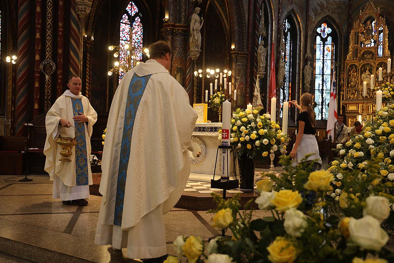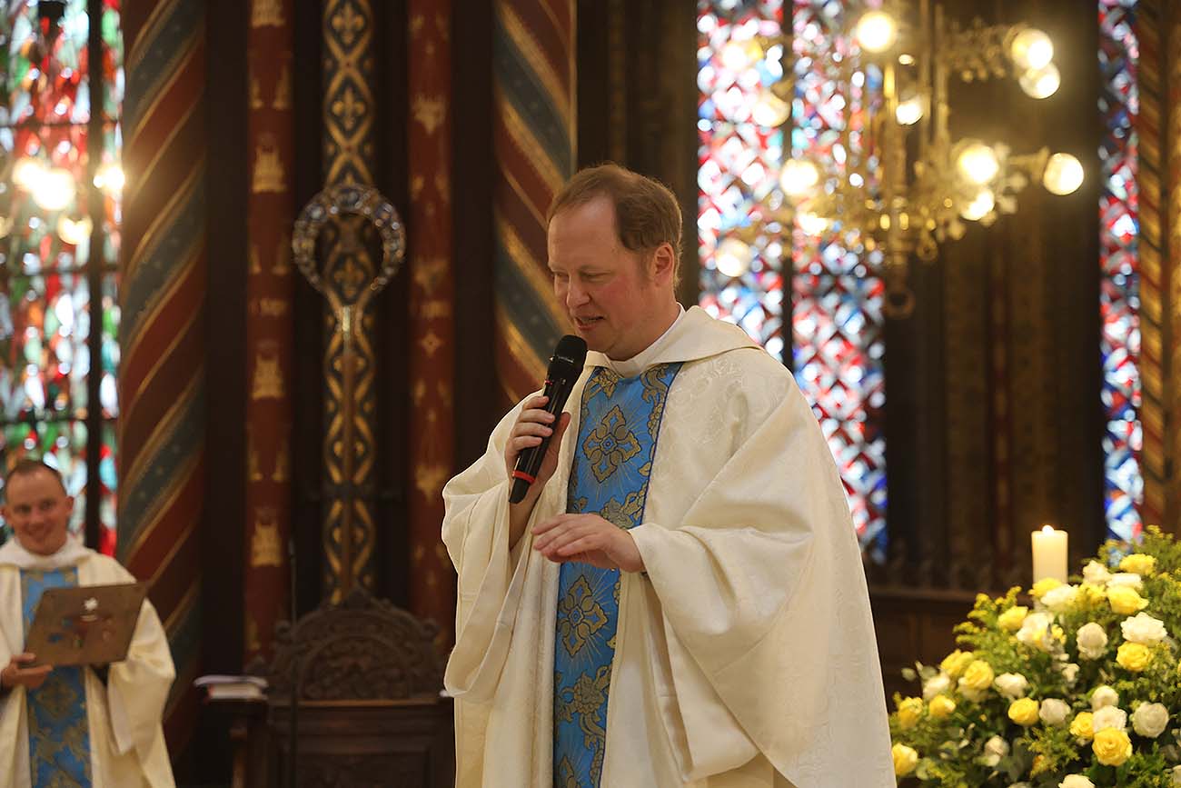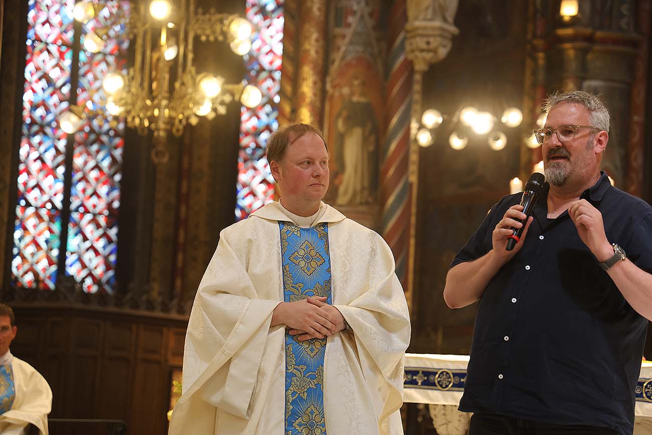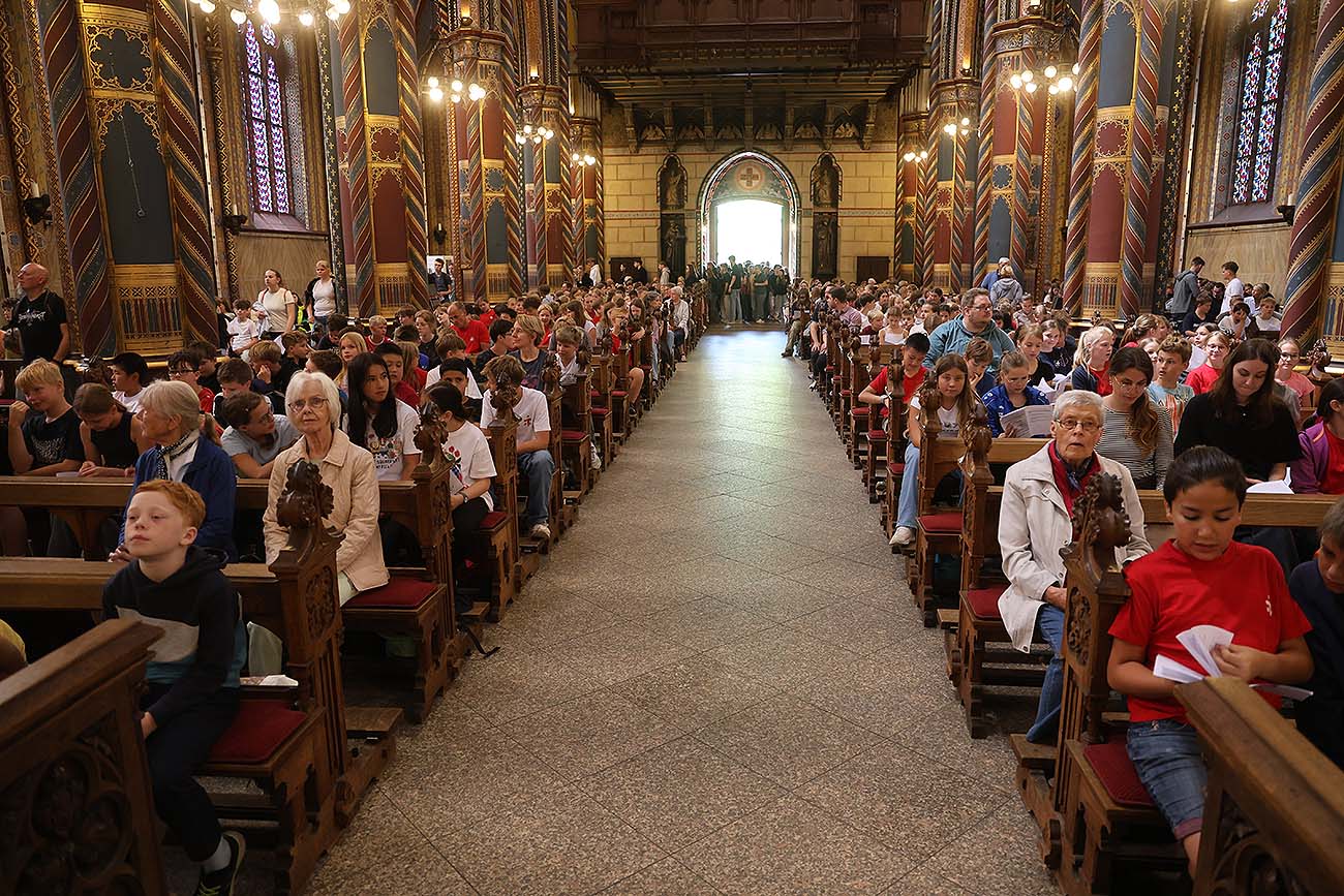 In Keylaer, einem kleinen Ort vor Kevelaer, treffen sich schließlich alle Gruppen. Von dort geht es in einem gemeinsamen Zug in die Stadt hinein – bis zur Basilika. Der abschließende Gottesdienst bildet den Höhepunkt den Abschluss, in dem sich die Eindrücke der gemeinsamen Wanderung, die Gespräche unterwegs und die kleinen stillen Momente bündeln. Am Ende des Gottesdienstes ließ sich das Direktorium nicht nehmen dem Spritual für seinen fünfjährigen unermüdlichen Einsatz für die Schüler auf der Gaesdonck zu danken, bevor er seine neue Stelle in Vechta antritt. Die Schulgemeinschaft bedankte sich bei Chrisoph Schwerhoff mit tosendem Applaus.