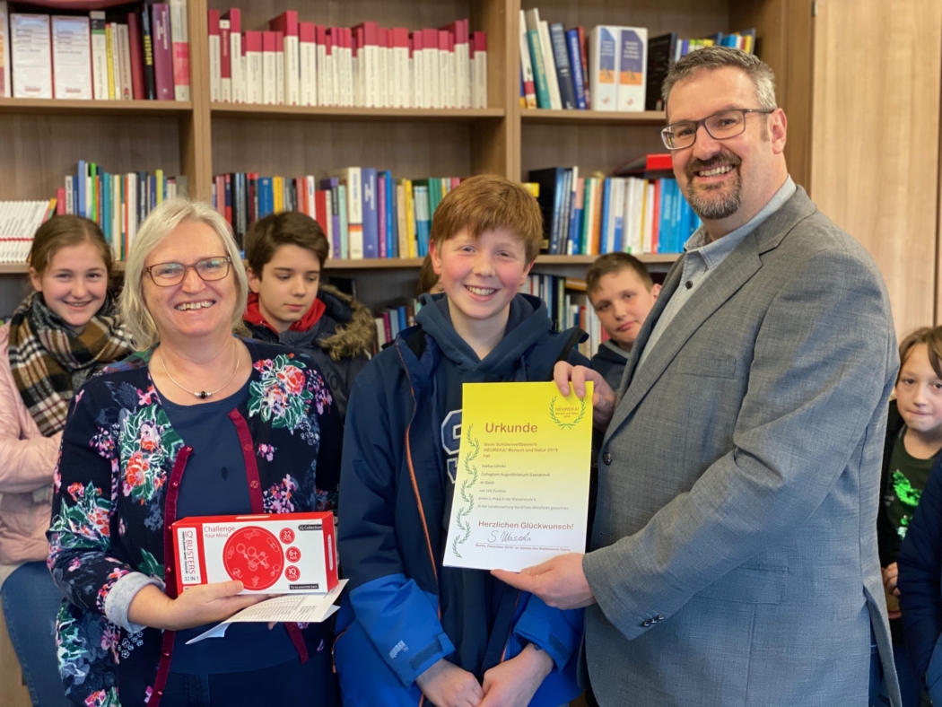 Besonders zu erwähnen ist Justus Lörcks (6b), der mit 168 von 180 möglichen Punkten den ersten Platz in der Landeswertung erzielt hat und somit den 9. Platz in der Bundeswertung seiner Jahrgangsstufe.