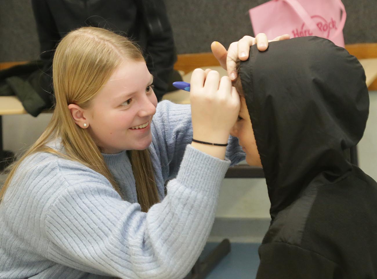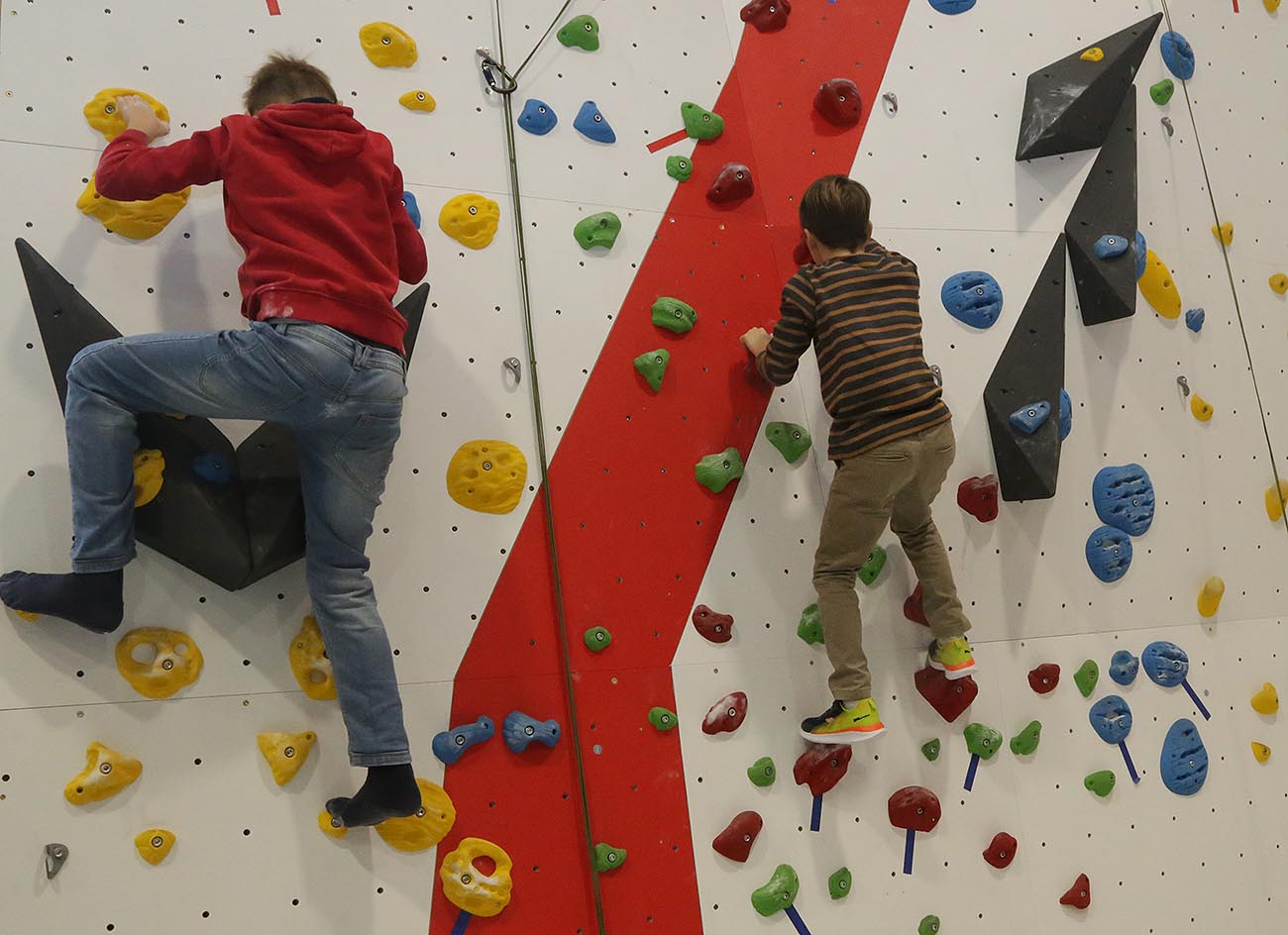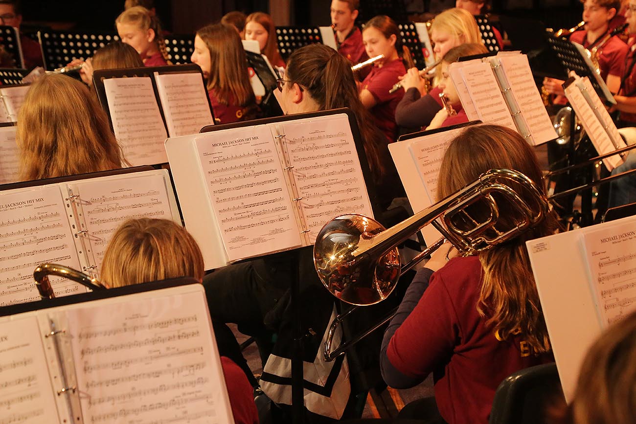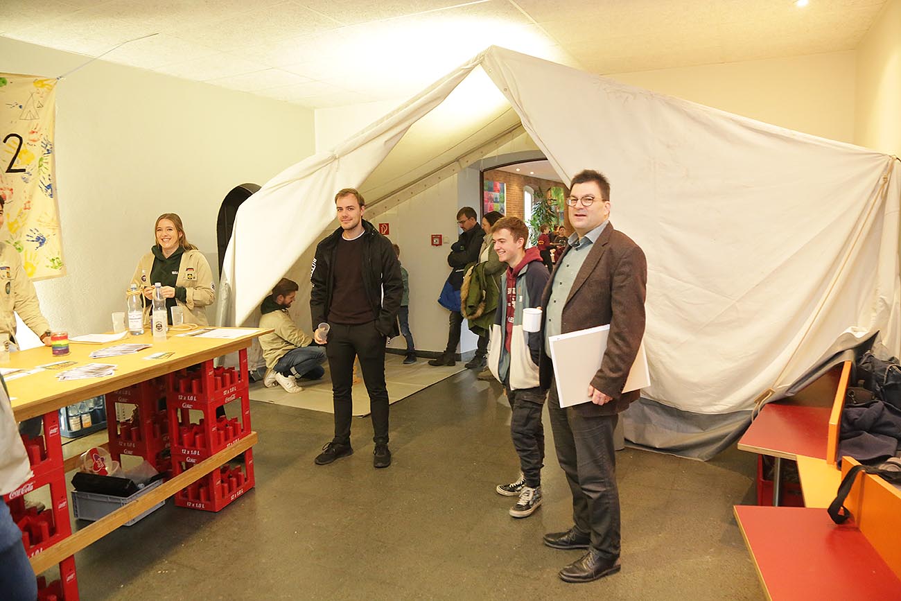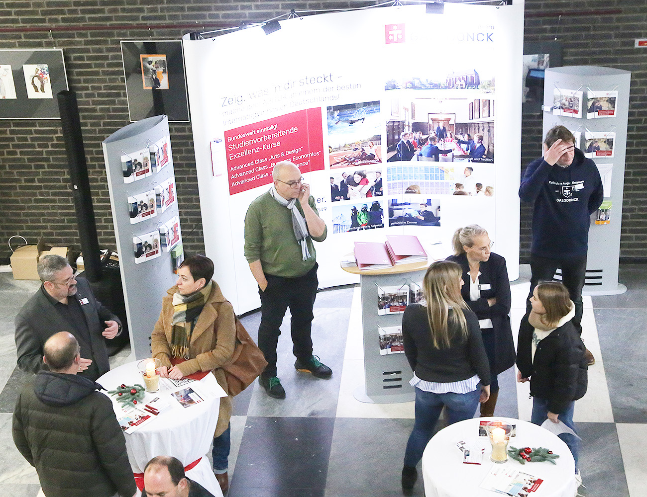 Dann zeigte er den Besuchern, was es alles zu entdecken gibt. Die Klassen und Häuser präsentierten „ihre Gaesdonck“ in einem bunten Bilderbogen: Vom Bouldern (an der Kletterwand) bis zur Leserunde in der Juvenatsbibliothek konnten man sich ein Bild von den vielfältigen Möglichkeiten auf dem Gaesdoncker Campus machen. Dass für alle etwas dabei ist, betonte auch Direktor Oberdörster, der später in der Aula das Gaesdoncker Motto „Kopf. Herz. Charakter.“ ausfaltete, bevor die BigBand die Zuhörer begeisterte.