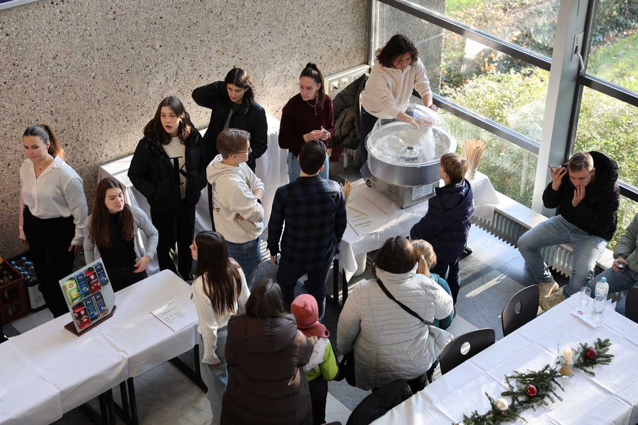 Am Tag der offenen Tür wollen unsere Schülerinnen und Schüler Werbung für Ihre Schule machen und Interessenten zeigen, was sie hier besonders mögen. Es ist immer wieder schön zu sehen, wie man sich und seine Schule an diesem ersten Adventswochenende präsentiert. Voller Begeisterung werden Experimente in den Naturwissenschaften gezeigt, der Waffelverkauf vor dem Juvenat betrieben, Memoryspiele in den alten und neuen Sprachen gespielt, Theater im Sprachzentrum aufgeführt oder die Essenausgabe in der Mensa organisiert. Man spürt die Begeisterung der Kids und die Freude, mit der sie ihre Schule präsentieren. So verwundert es nicht, dass sich viele Kinder auch gut vorstellen können diese Schule zu besuchen.