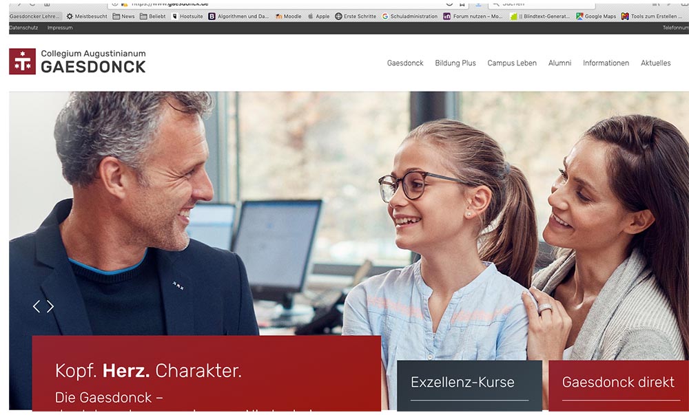Der Direktor führte bei seiner Demonstration der Seite, die seit 14.00 Uhr online ist, aus, welche Überlegungen in die Struktur der Homepage eingeflossen sind. In Zukunft soll noch deutlicher werden, dass die Gaesdonck ein exzellentes Internatsgymnasium ist. Besonders die im kommenden Schuljahr startende Advanced Class „Medical Sience“ stellt ein Novum in der deutschen Bildungslandschaft dar. So hat man hier gemeinsam mit Medizinern ein hochwertiges Konzept entwickelt, um Schülerinnen und Schüler künftig auf ein Medizinstudium vorzubereiten. Aber sehen Sie sich selber um…