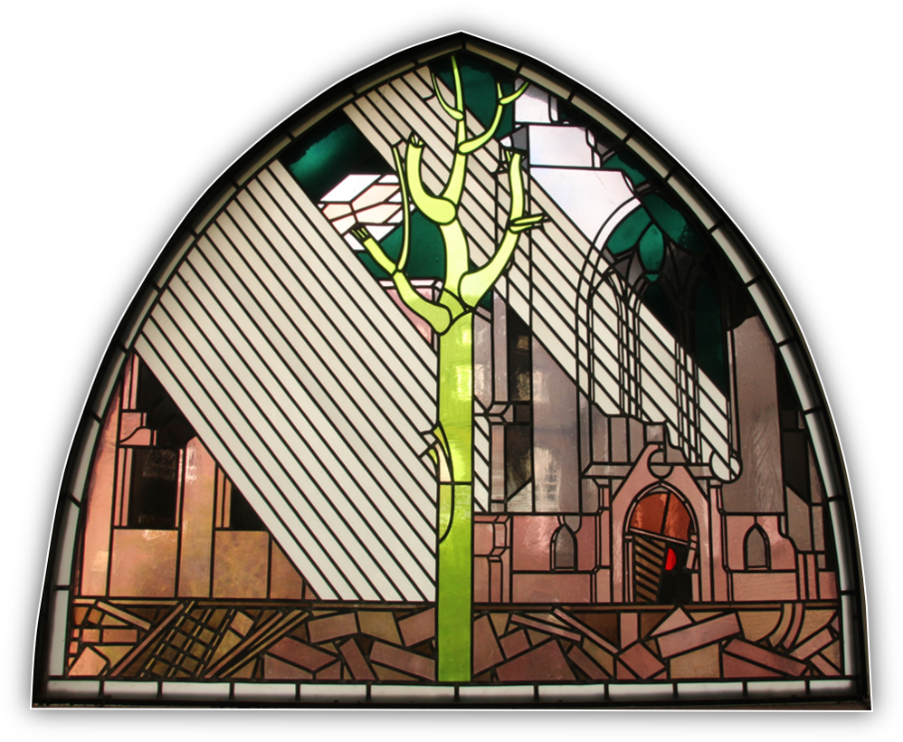 Glasfenster aus dem Bilderzyklus von Franz Josef van der Grinten im Gaesdoncker Kreuzgang