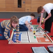Herr Rüsing kam aus dem Strahlen kaum noch heraus. Anfang Mai konnte sich die von ihm betreute Robotik AG beim Robotik Wettbewerb in Geldern den ersten Platz sichern. Mit kniffligen Programmieraufgaben qualifizierte sich das Team damit für die nächste Regionalrunde in Neuss. Ein Bericht von Mathilda D.