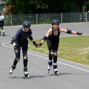 Kurz vor Schuljahresende trainiert der Inliner-Kurs der Oberprima mit den Profis vom Speed Skating Club Köln.