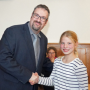 Mit ihrem Buch „Die unlangweiligste Schule der Welt“ von Sabrina J. Kirschner und einem weiteren ihr unbekannten Text („Die besten Freunde der Welt“ v. Ute Wegmann) hat sich Johanna Weber aus der 6a gegen Simon Geßwein (6b) und Valentina Maivogel (6c) durchgesetzt. Sie ist nun Gaesdoncker Schulsiegerin im 61. Vorlesewettbewerb des Deutschen Buchhandels und wird unsere Schule im Frühjahr, dann auf Bezirksebene, vertreten.