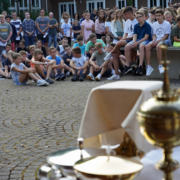 Kurz vor 13.00 Uhr zieht ein nicht zu übersehender Menschenstrom vom Hubertusplatz Keylaer die Straße hinauf – Richtung Kevelaer Zentrum, erst zur Gnadenkapelle, dann in die Basilika. Dort feiern die sicherlich 800 Gaesdoncker Schüler, Lehrer, Erzieher, Mitarbeiter und einige Eltern den Abschlussgottesdienst der seit 2007 elften Schulwallfahrt, nicht mitgerechnet die Romwallfahrt und die beiden Jahre, in denen wegen Unwetters das Pilgern ausfiel.