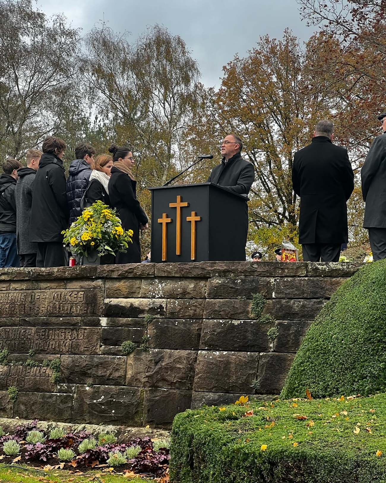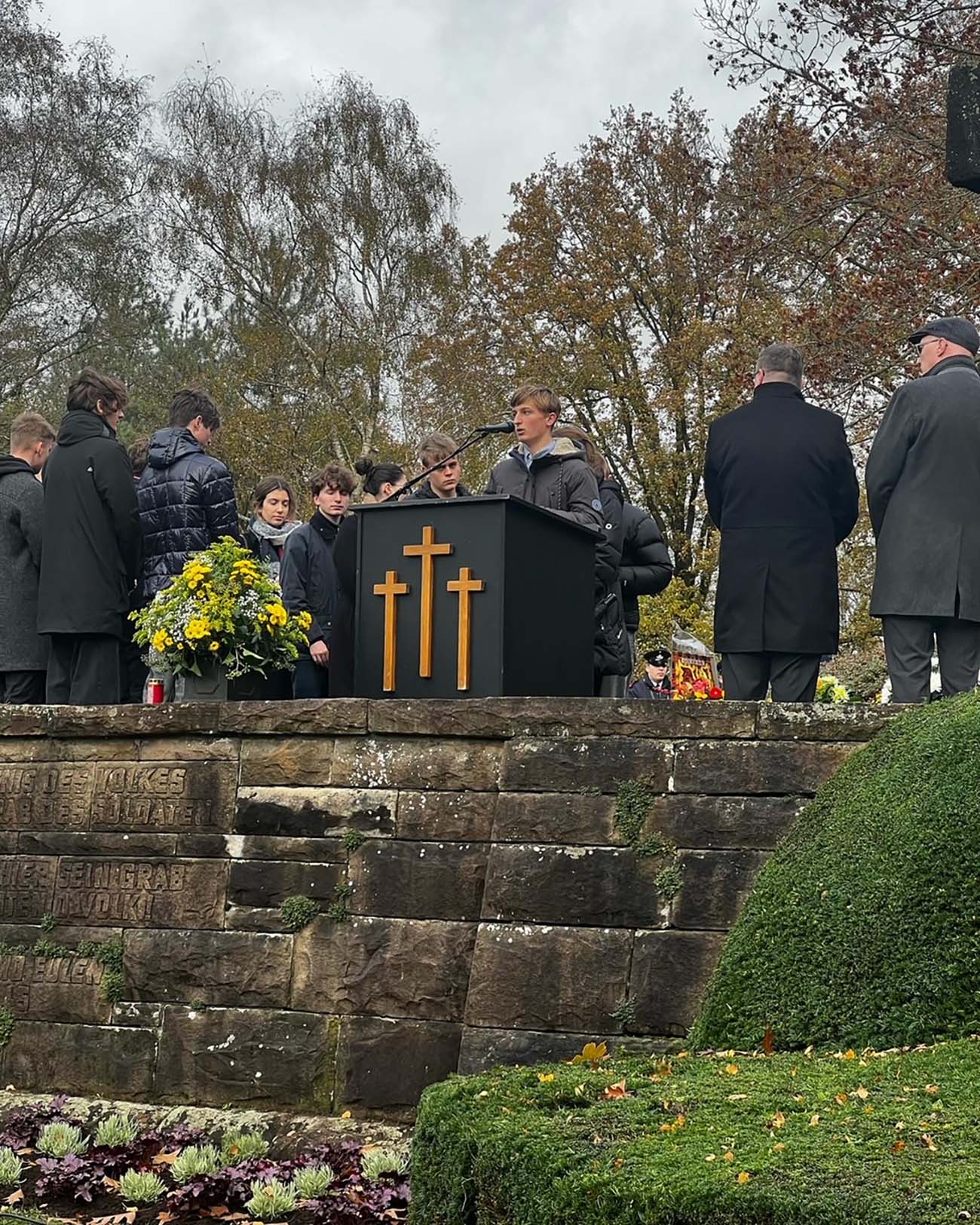 Geschichts LK (Q1) beim Volkstrauertag auf der Kriegsgräberstätte in Weeze