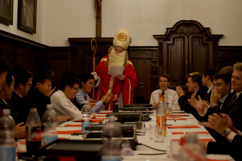 Wenn der Erzieher per „Standing Ovations“ gefeiert wird, muss etwas Außergewöhnliches passiert sein. So ist es schon eine gute Tradition im Primaner Haus Phönix, dass der Nikolaus die Jungen in der Adventszeit besucht. Auch in diesem Jahr fand am Nikolausabend eine stimmungsvolle Feier im altehrwürdigen Klosterspeisesaal statt.Der neue Direktor, Herr Dr. Oberdörster ließ es sich nicht nehmen dieser Feier beizuwohnen. Nach einem tollen Abendessen betrat der Nikolaus (unter dem Bischofskostüm verbarg sich der Internatsleiter Michael Gysbers) den Klosterspeisesaal, um gekonnt in Reimform die Gedichte über die Oberstufenschüler vorzutragen. Viele lustige Anekdoten wurden den Zuhörern präsentiert, die mit viel Applaus der anwesenden Primaner honoriert wurden. Das stilvolle Fest wurde abgerundet durch ein gemütliches Beisammensein in der Taverne.