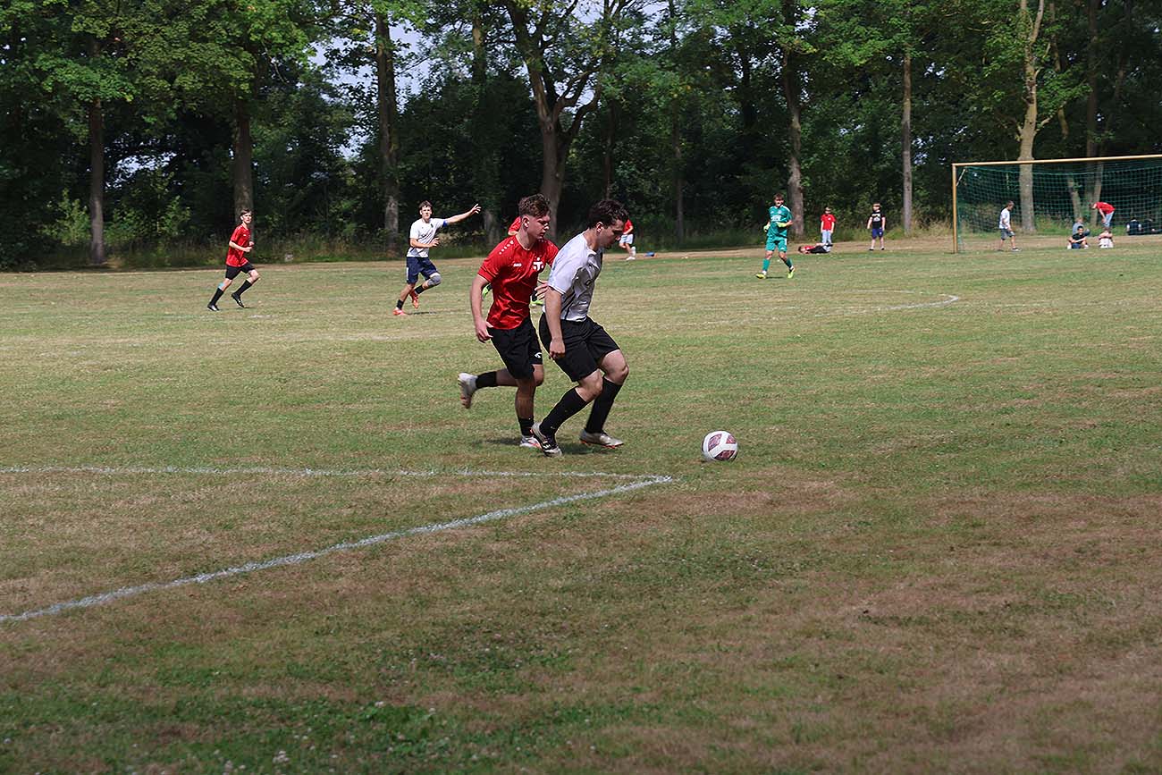 In der dritten und vierten Stunde traten die künftige Q1 und Q2 in einem Fußballspiel gegeneinander an. Bei bestem Wetter verfolgten zahlreiche Schülerinnen und Schüler das sportliche Duell und feuerten ihre Jahrgangsstufen an.