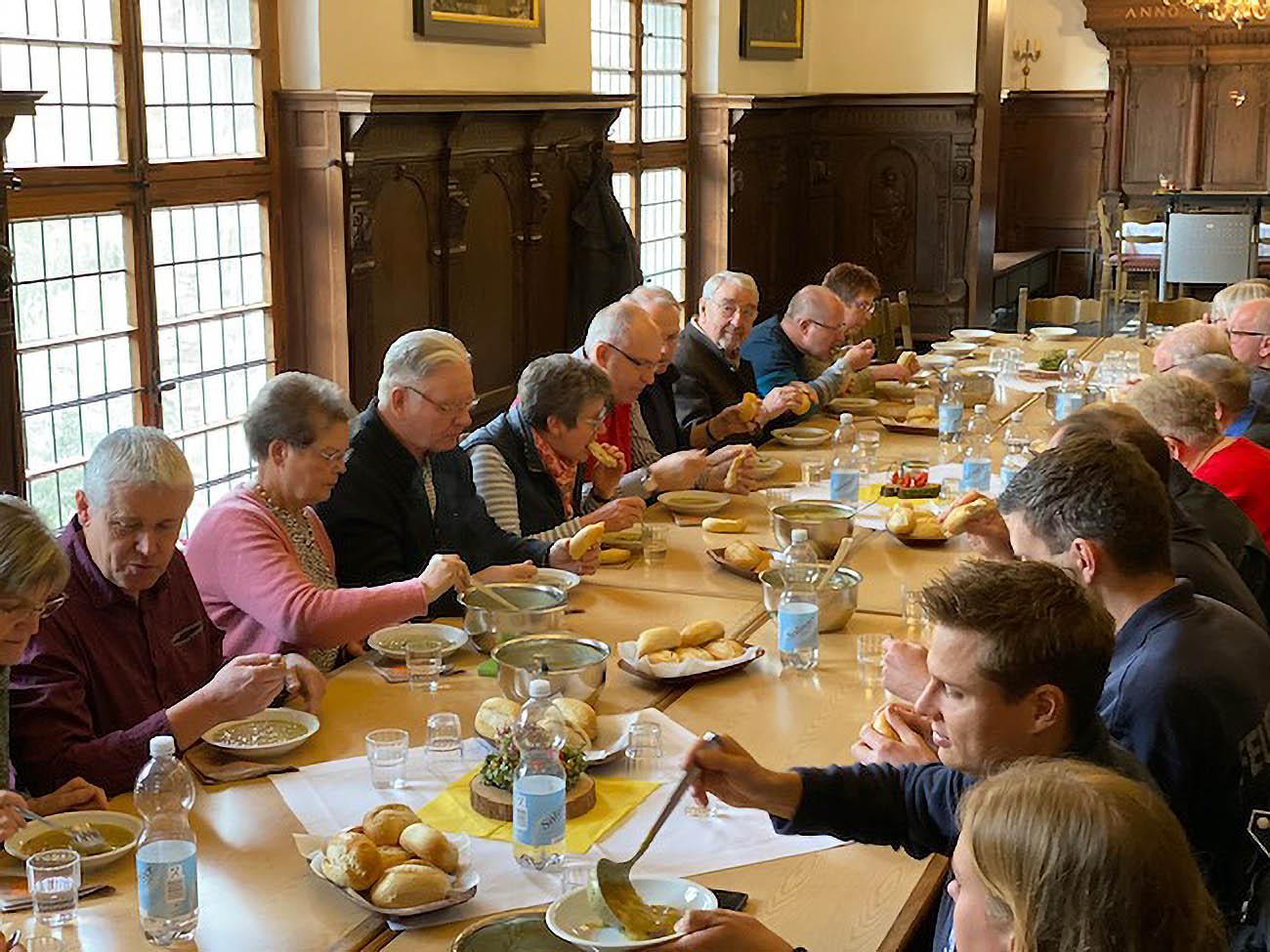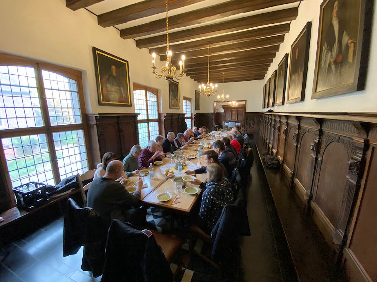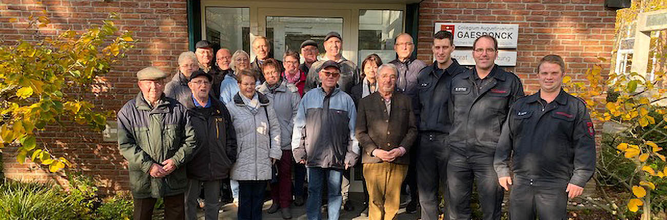 „Einen mehr als interessanten Vormittag verbrachten die Kameraden der Ehrenabteilung der Weezer Feuerwehr, zusammen mit ihren Partnerinnen, auf der Internatsschule Gaesdonck. Einmal im Jahr lädt der Wehrleiter die Kameraden zu einem gemeinsamen Ausflug ein, der die Verbundenheit mit der Feuerwehr stärken soll. Es ist eine gute Gelegenheit miteinander ins Gespräch zu kommen und sich untereinander auszutauschen. Traditionell steht dabei aber auch der Besuch einer niederrheinischen Einrichtung oder eines Unternehmens im Vordergrund. Dieses Mal hatten wir die besondere Möglichkeit, das Collegium Augustinianum Gaesdonck zu besuchen, dafür herzlichen Dank. Beeindruckt zeigten sich die Besucher von der Fülle an Angeboten sowie der exzellenten Ausstattung dieses einmaligen Bildungscampus, verbunden mit einer Geschichte, die bis ins 14. Jahrhundert zurückreicht. Dennoch wird mit Angeboten, wie beispielsweise der Advanced Class Medical Science deutlich, dass die Gaesdonck in der Geschichte verwurzelt, aber vom Bildungsanspruch längst im 21 Jahrhundert angekommen ist. „Da möchte man doch selbst wieder Schüler sein.“ Auch geschichtlich hat die Einrichtung einiges zu bieten. Angefangen von der Klostergründung, über die Schließungen während des Kulturkampfes und der NS-Herrschaft. Kurz: Spannend! Bei Kaffee und Kuchen klang der gemeinsame Tag der Ehrenabteilung im Weezer Marktcafé aus. Ehrenabteilung: In die Alters-und Ehrenabteilung werden die Feuerwehrfrauen und Männer aufgenommen, die aus Alters- oder Krankheitsgründen aus dem aktiven Dienst in der Feuerwehr ausscheiden. Dennoch gilt auch hier: Einmal Feuerwehr immer Feuerwehr!“