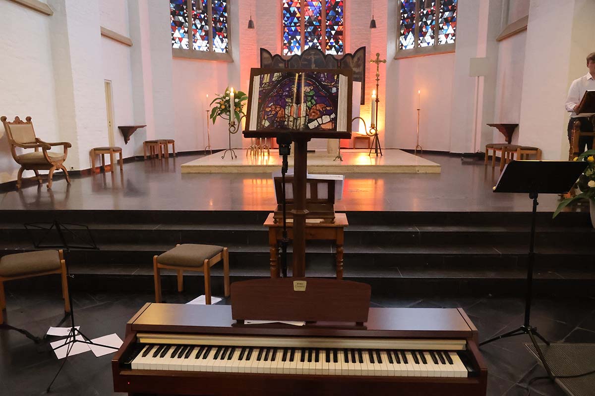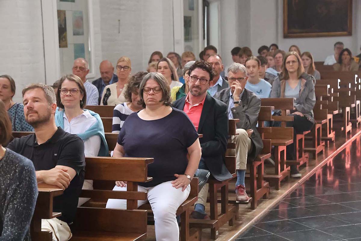 Am vergangenen Sonntag reihte sich ein weiteres Highlight in das Gaesdoncker Jubiläumsjahr ein. In der Klosterkirche inszenierten Schülerinnen und Schüler der Oberstufe in einem Werkstattkonzert viele Lieder aus den vergangenen Jahrhunderten in Gesang und instrumenteller Begleitung und präsentierten vor einem großen Publikum Interessierter zum Teil sogar Stücke aus der hauseigenen Klosterbibliothek. Eingebettet wurde die Vorstellung in eine Reise durch die Evolution der Kirchenmusik von Kirchentonarten, die die Schülerinnen und Schüler bereits aus dem Unterricht kannten, bis hin zu modernen Stücken, die allesamt in den vergangenen Wochen einstudiert wurden. Die Ensembles der Schülerinnen und Schüler wurden zudem von Alumni, Frau Verrieth sowie Herrn Hendricks unterstützt. Nach dem Konzert konnten in einer Ausstellung originale Werke aus der Gaesdoncker Klosterbibliothek bestaunt werden. Die tolle Leistung aller Beteiligten unter der Organisation von Herrn Hendricks zeigte sich zum Abschluss in großem Beeindrucken seitens der Zuhörerinnen und Zuhörer und das Konzert ergänzte das Jubiläumsjahr perfekt mit einer Mischung aus Kopf, Herz und Charakter.