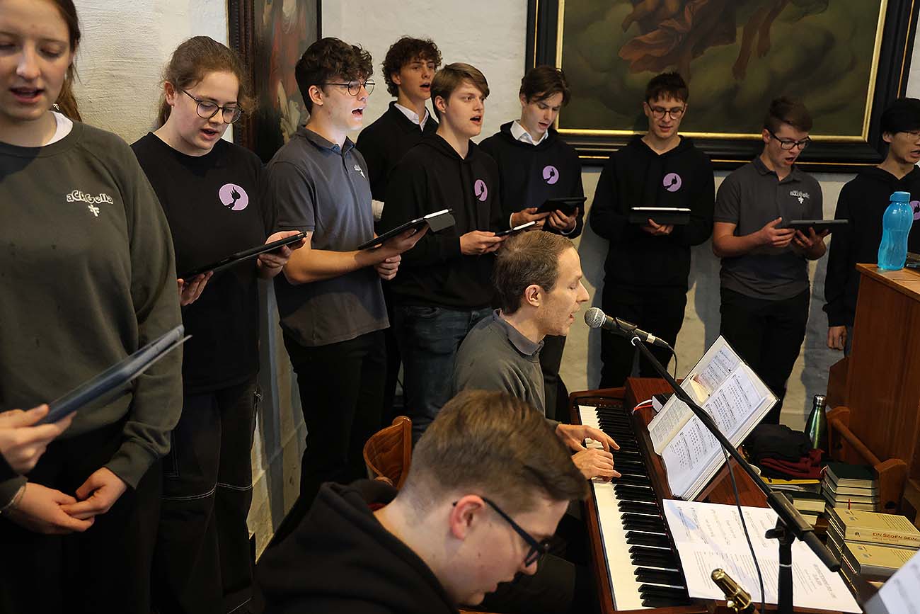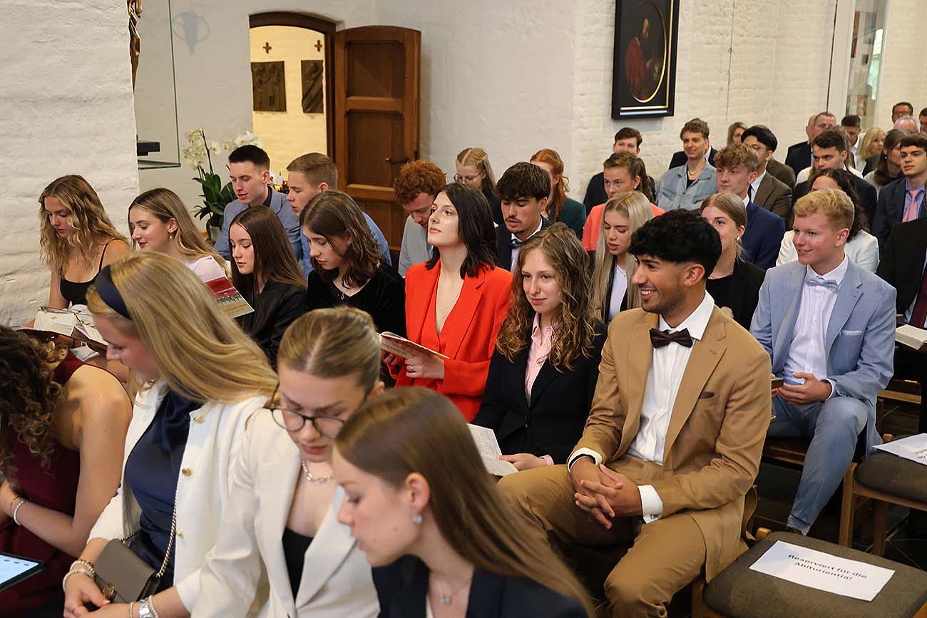 Möget ihr bei allem schulischen, beruflichen und wirtschaftlichen Erfolg, der euch sicherlich beschert werden wird, zu guten Freunden für eure Freunde, zu guten Eltern für euere Kinder, zu ökologisch Denkenden für eine fragile Umwelt oder auch zu friedliebenden Gesellschaftsmitglieder werden, wie Herr Dr. Oberdörster es in seiner Rede formulierte. Wir schließen uns den guten Wünschen aller Redner an, von Weihbischof Lohmann, dem Elternvertreter Herr Lindemann über die Speakerin des Internats, Nora Falk, bis zu eueren Stufenleitern Nina Heilmann und Gerd Schalück oder der Q1, die im nächsten Jahr an euer Stelle sein wird, an: Alles Gute und feiert bis zum Morgengrauen – Ihr habt es euch verdient! Es soll ein Aufbruch sein in einen neuen Lebensabschnitt.